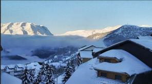 T2 bis , rénovation récente, classé 3 étoiles, spacieux et très lumineux, à 100m ot, commerces et remontées mécaniques (ts grande sure, télécentre, alp'express), navette gratuite au pied de l'immeuble, retour à skis. 1 chambre: lit double et lit appoint1 personne, séjour: canapé 2 lits gigognes 1 personne, coin montagne divan 1personne; cuisine équipée; terrasse sud aménagée pour repas et bains de soleil, garage et placard à skis. chèques vacances acceptés. --